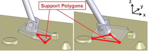 セミアクティブ適応接地支持多角形確保機構を用いて凸凹を踏んだ場合の支持多角形