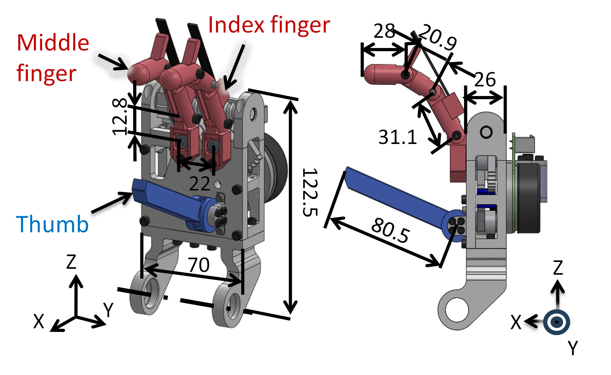 人間同等な出力が発揮可能な前腕部,劣駆動による指部機構,